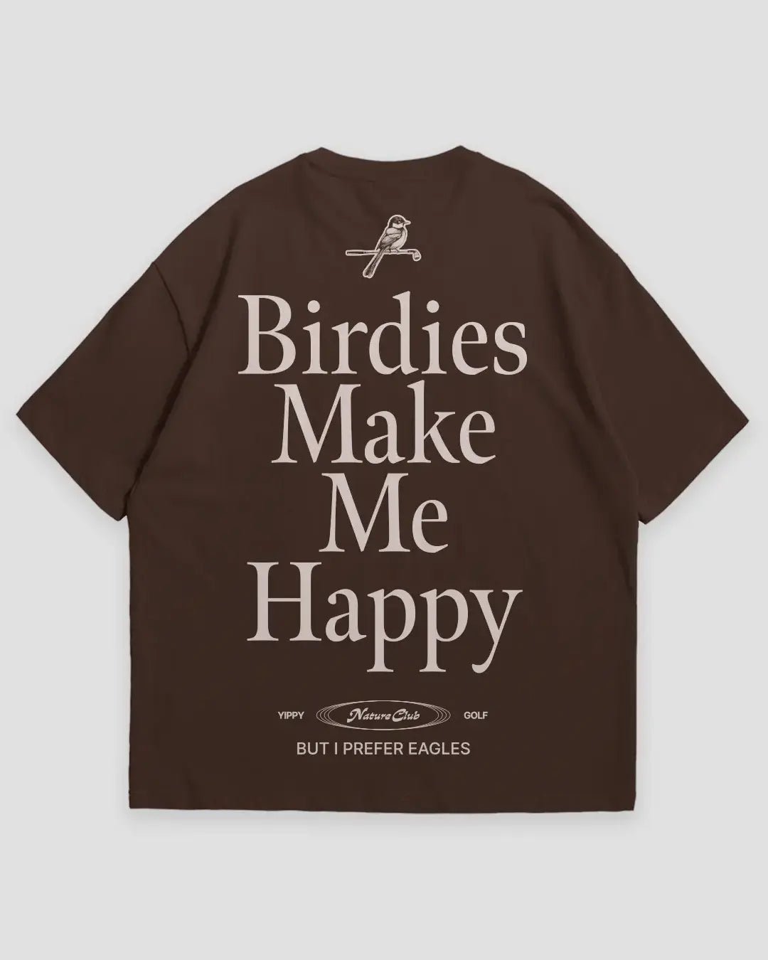 The Yippy Golf Birdies Make Me Happy T-Shirt is for the golfers who grin at the sight of a birdie—on the card or in the trees.And you obviously prefer eagle. Cut from 100% cotton in an oversized fit, this tee brings nature’s chill to your golf game and beyond. It’s soft, breathable, and perfect for soaking in the course’s vibes—whether you’re swinging through the pines or just kicking back with that post-round glow. Part of the Nature Club Collection, it’s a shoutout to the simple joys of golf and the wild that surrounds it.