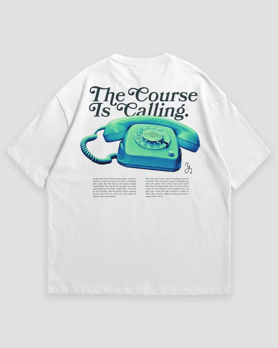 The Yippy Golf Course is Calling T-Shirt is your wearable reminder that the fairway’s always dialing your number—and you’re itching to pick up. This oversized 100% cotton tee keeps it subtle with a small “The Course is Calling” design on the front, then dials up the nostalgia with a big, bold “Course is Calling” and retro rotary phone graphic on the back. It’s for the golfer who’s never not thinking about that next round—whether you’re stuck at work or just counting down to Saturday.